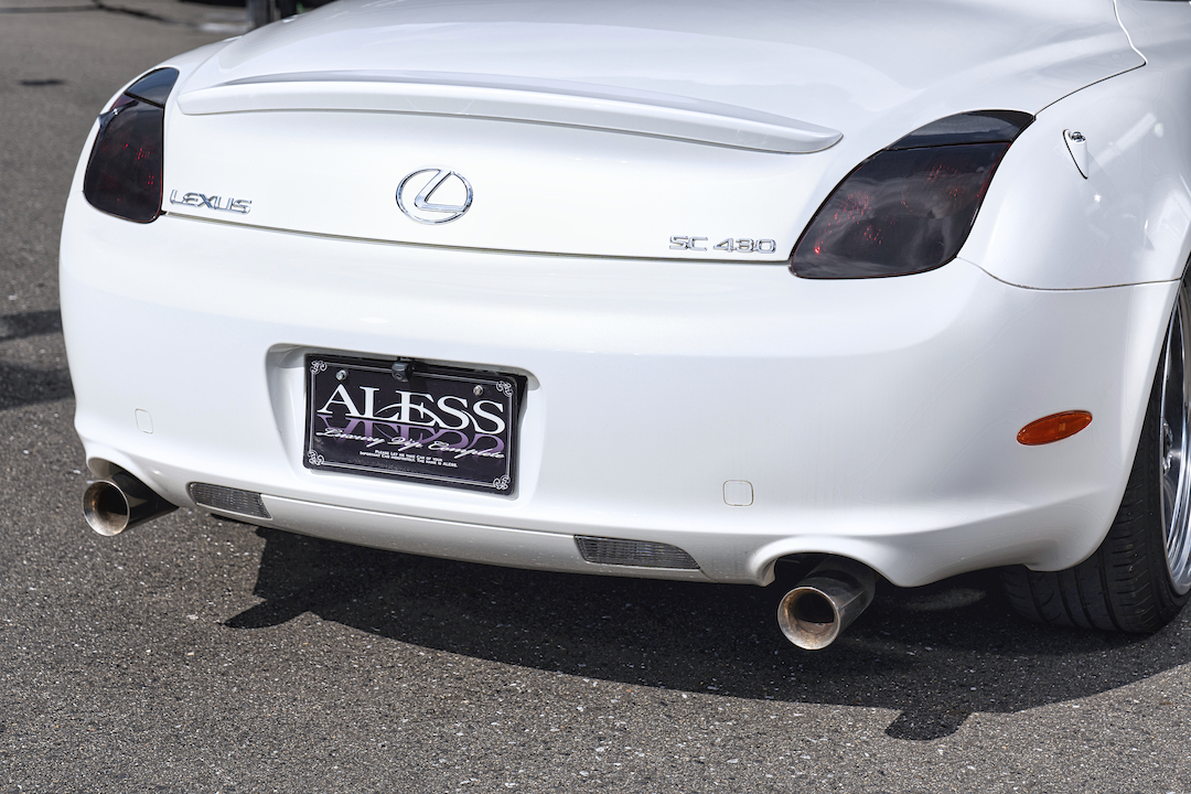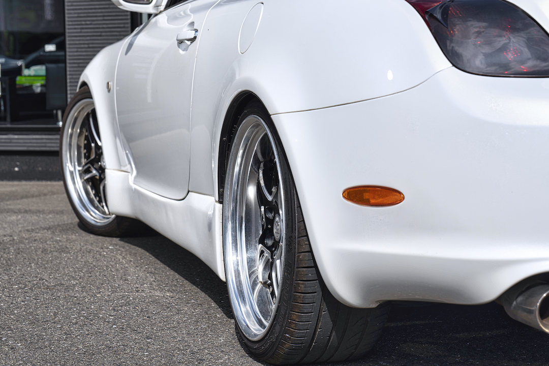 今回紹介しているソアラは、シンプルなデザインのフロントバンパーを装着し、人との違いを演出。さらに、20インチホイールを投入し、高級感のアップも図る。モデル名はワークのデュランダルDD5.2で、躍動感のあるツインスポークのデザインはドレスアップ性も高い。