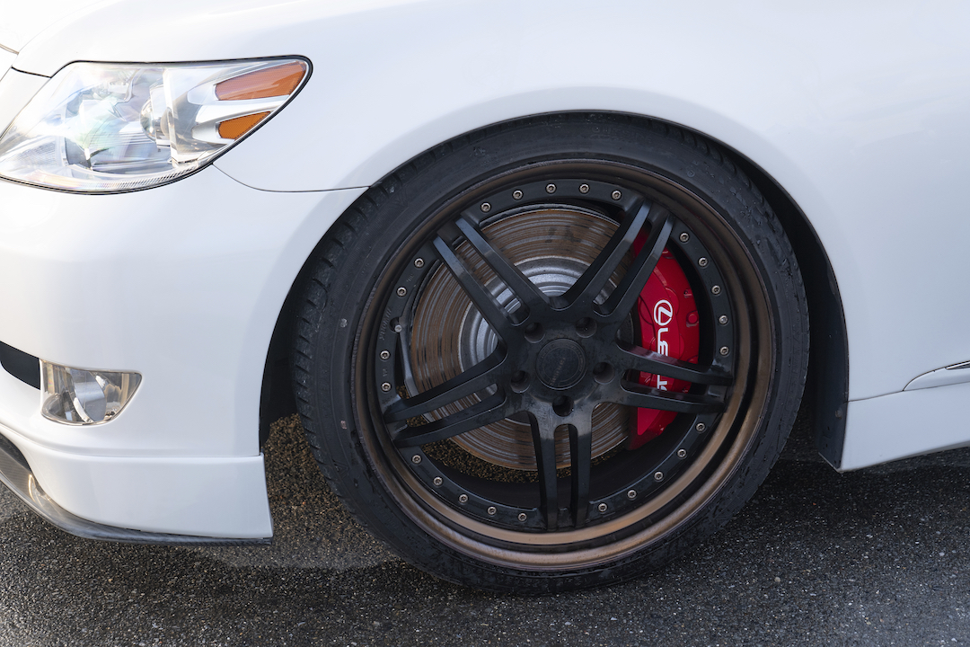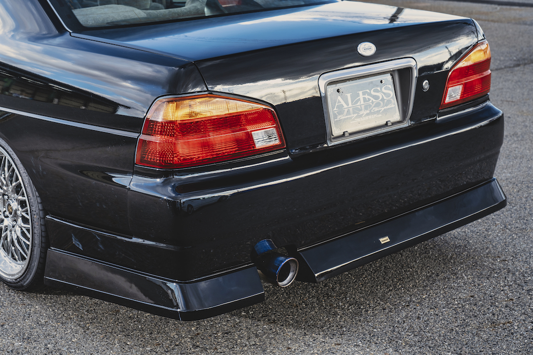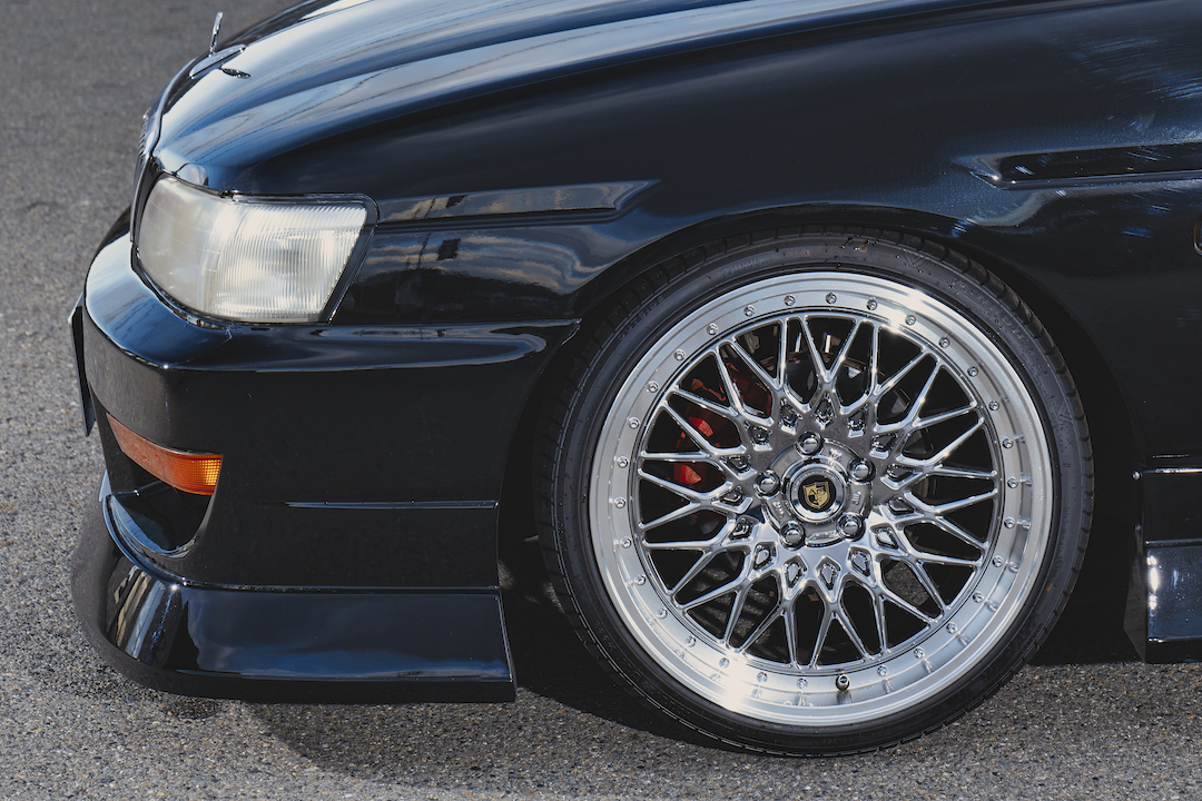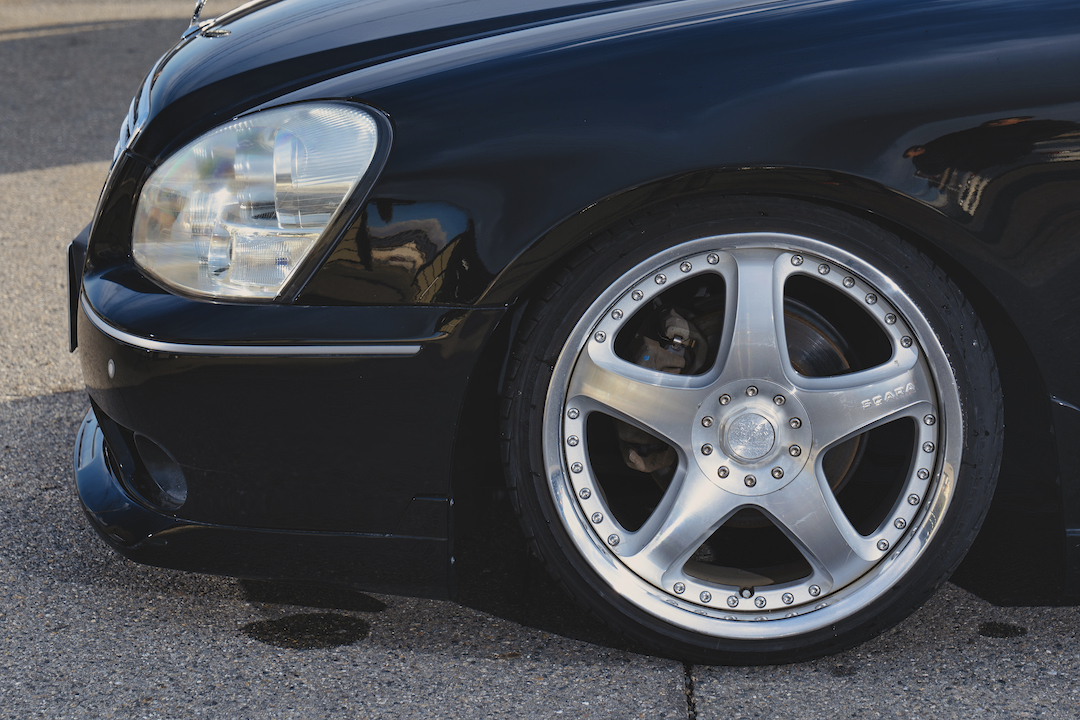 ワンダー シャドウのエアロ×アレスのオリジナルホイールの組み合わせで、スポーツとVIPを掛け合わせた仕様になっているのがポイントです。エアロは張り出し系で、スポーティ。ホイールは高級感あるメッキなので、VIP。スポーティとVIPの両方を楽しめます。足まわりは新品のフルタップ式車高調を組んでいます。フルタップ式なので、もう少し車高を下げたりなど、お好みで車高を調整することも可能です。ローレルは本当に若い方たちに大人気。最近はドリフト目当てっていうよりも、ドレスアップを楽しむ方が増えているなっていう印象があります。ボディサイズもそこまで大きくないので、初めてセダンに乗るって方も運転しやすいと思いますよ。