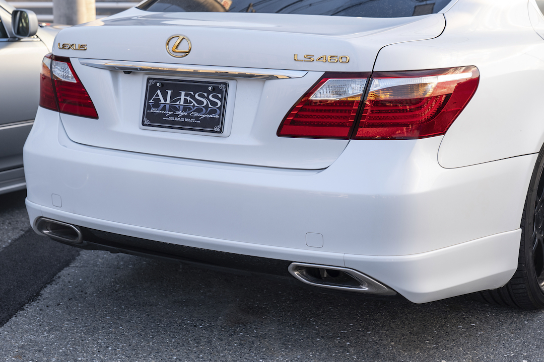 40LSの中期型。グレードは希少なバージョンSZで、スポーツグレードになります。純正の時点でビッグキャリパーが入っているのがポイントですね。マフラーは社外品に変更済みで、ストレートではないんですが、スポーティな音が出るタイコ付きマフラーが入っています。このマフラーのお陰で、V8エンジン特有のSZらしいスポーティなサウンドを奏でます。フロントはレクソンのリップ。高級なカーボン仕様というのもポイント。ホイールも高級品で、21インチのワーク グノーシス。ブラックのディスク×ブロンズのリムという、ドレスアップ性の高いカラーコーデになっています。データシステムのエアサスコントローラーも入っており、スイッチ一つで好みの車高に調整できます。止まっている時はベタベタに、段差が気になる時は少し上げたり、そんな風に車高を上げ下げできるので、とっても便利です。走行距離は7万㎞。もちろん、サンルーフ付き。内装は珍しいアイボリーなんですが、この年式&距離にしては、程度もかなりいいと思います。