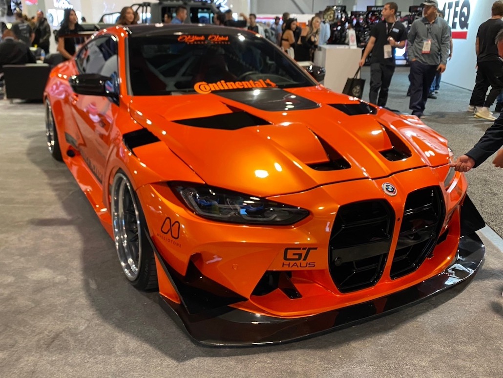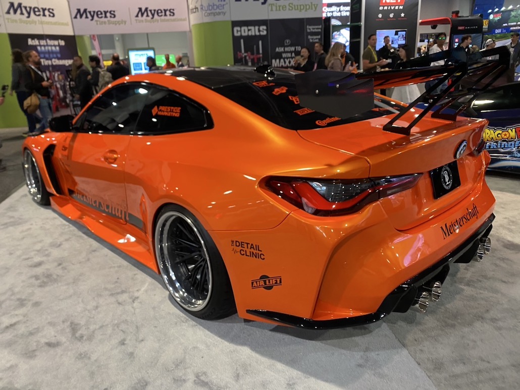 この車輌の情報は乏しいのだが、恐らく有名ホイールメーカーが出展したクルマ。そして、気になった理由は、僕らロゼルの220クラウン ブリスター仕様に似ているから(笑)。僕らがブリスターを作った時、凄く悩んだんです。ブリスターからヘッドライトに繋がる部分の処理や、リアのワイドの落と込み具合など、「やっぱり、そうするよね!」って感じで、このBMWの作り手と会話をしたら「分かる! 分かる!」ってなるだろうなって思いました。ちなみに、僕らのクラウンもオレンジで、このBMWもオレンジ。共通点が多くて驚きましたね。