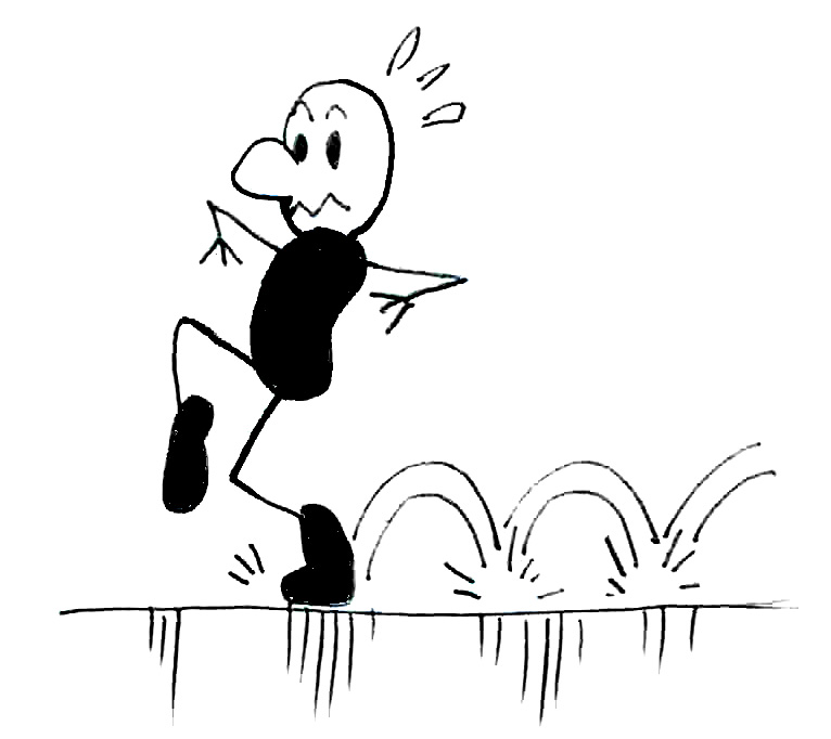 「どちらの場合も足を踏ん張って止まろうとすれば、スッテーーンと転ぶよね」